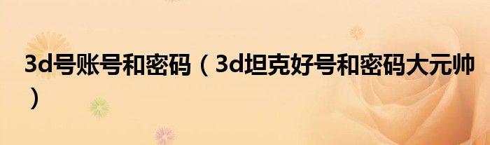 关于3d号账号和密码,3d坦克好号和密码大元帅这个很多人还不知道,今天菲菲来为大家解答以上的问题,现在让我们一起来看看吧!