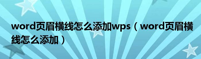 关于word页眉横线怎么添加wps,word页眉横线怎么添加这个很多人还不知道,今天菲菲来为大家解答以上的问题,现在让我们一起来看看吧!