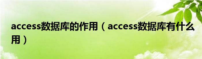 关于access数据库的作用,access数据库有什么用这个很多人还不知道,今天菲菲来为大家解答以上的问题,现在让我们一起来看看吧!