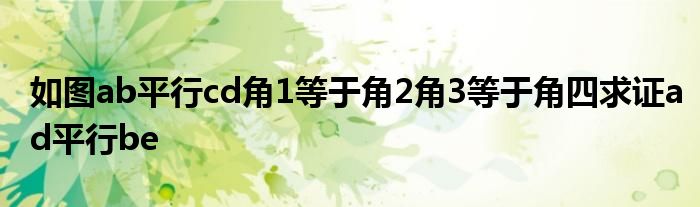 关于如图ab平行cd角1等于角2角3等于角四求证ad平行be这个很多人还不知道,今天菲菲来为大家解答以上的问题,现在让我们一起来看看吧!