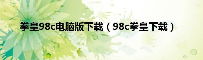 关于拳皇98c电脑版下载,98c拳皇下载这个很多人还不知道,今天菲菲来为大家解答以上的问题,现在让我们一起来看看吧!