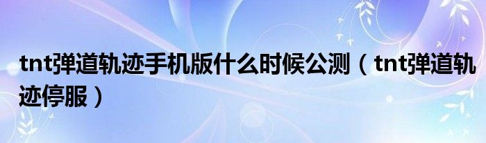 tnt弹道轨迹手机版什么时候公测(tnt弹道轨迹停服)