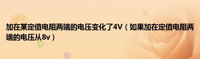 关于加在某定值电阻两端的电压变化了4V,如果加在定值电阻两端的电压从8v这个很多人还不知道,今天菲菲来为大家解答以上的问题,现在让我们一起来看看吧!