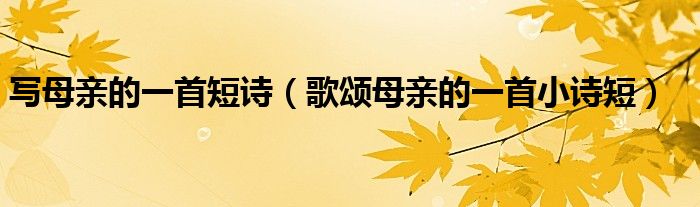 大家好,小晋来为大家解答以下问题,关于写母亲的一首短诗,歌颂母亲的一首小诗短很多人还不知道,今天让我们一起来看看吧!