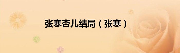 关于张寒杏儿结局,张寒这个很多人还不知道,今天菲菲来为大家解答以上的问题,现在让我们一起来看看吧!