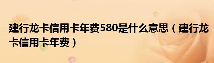 关于建行龙卡信用卡年费580是什么意思,建行龙卡信用卡年费这个很多人还不知道,今天菲菲来为大家解答以上的问题,现在让我们一起来看看吧!