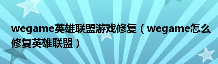 大家好,小晋来为大家解答以下问题,关于wegame英雄联盟游戏修复,wegame怎么修复英雄联盟很多人还不知道,今天让我们一起来看看吧!