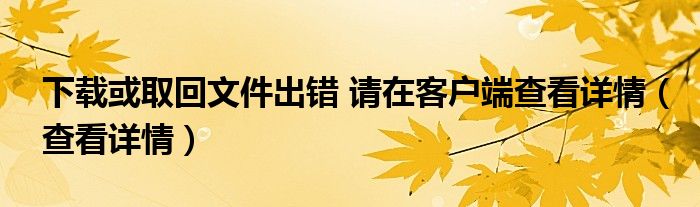 大家好,小晋来为大家解答以下问题,关于下载或取回文件出错 请在客户端查看详情,查看详情很多人还不知道,今天让我们一起来看看吧!