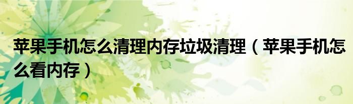 大家好,小晋来为大家解答以下问题,关于苹果手机怎么清理内存垃圾清理,苹果手机怎么看内存很多人还不知道,今天让我们一起来看看吧!
