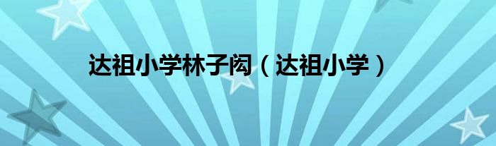 达祖小学林子闳,达祖小学很多人还不知道,乐乐来为大家解答以上问题,现在让我们一起来看看吧!