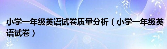 关于小学一年级英语试卷质量分析,小学一年级英语试卷这个很多人还不知道,今天菲菲来为大家解答以上的问题,现在让我们一起来看看吧!