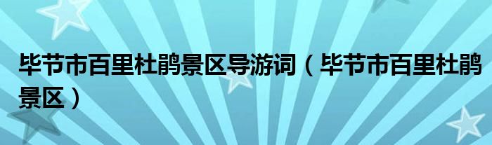 关于毕节市百里杜鹃景区导游词,毕节市百里杜鹃景区这个很多人还不知道,今天菲菲来为大家解答以上的问题,现在让我们一起来看看吧!