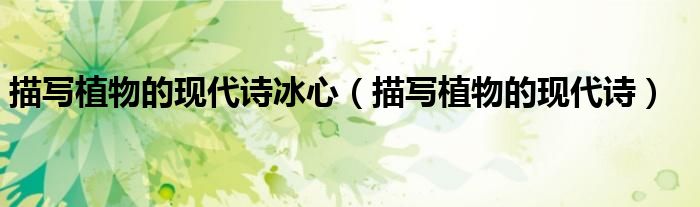 关于描写植物的现代诗冰心,描写植物的现代诗这个很多人还不知道,今天菲菲来为大家解答以上的问题,现在让我们一起来看看吧!