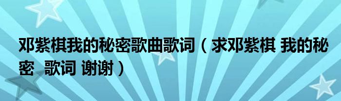 1、歌曲:《我的秘密》作曲:邓紫棋作词:邓紫棋演唱:邓紫棋歌词:最近一直很好心情,不知道什么原因我现在这一种心情,我想要唱给你听看着窗外的小星星,心里想着我的秘密算不算爱我不太确定,我只知道我在想你我们之间的距离好像忽远又忽近你明明不在我身边我却觉得很亲Ha~有一种感觉我想说明我心里的秘密,是你给的甜蜜我们之间的距离好像一点点靠近是不是你对我也有一种特殊感情Ha~我犹豫要不要告诉你我心里的秘密,是我好像喜欢了你夜里陪着我的声音,就算沙了也动听这一种累了的声音,是最温柔的证明你是我,你是我的秘密我一直偷偷想着你,你是我心里的秘密我们之间的距离好像忽远又忽近你明明不在我身边我却觉得很亲Ha~有一种感觉我想说明我心里的秘密,是你给的甜蜜我们之间的距离好像一点点靠近是不是你对我也有一种特殊感情Ha~我犹豫要不要告诉你我心里的秘密,是我好像喜欢了你这模糊的关系,是莫名的美丽我们之间的距离好像忽远又忽近你明明不在我身边我却觉得很亲Ha~这一刻我真的想说明我心里的秘密,是你给的甜蜜我们之间的距离每天一点点靠近这是种别人无法理解的特殊感情Ha~我要让全世界都清晰我心里的秘密,是我会一直深爱着你深爱着你扩展资料:《我的秘密》是由邓紫棋作词、作曲并演唱的一首歌曲,收录于其2010年10月29日发行的专辑《My Secret》中。