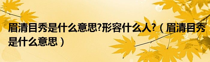 眉清目秀是什么意思?形容什么人?(眉清目秀是什么意思)