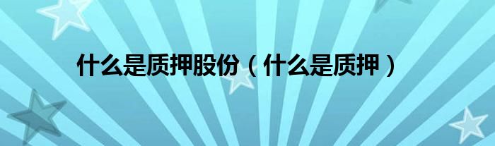 关于什么是质押股份,什么是质押这个很多人还不知道,今天菲菲来为大家解答以上的问题,现在让我们一起来看看吧!