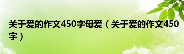 关于关于爱的作文450字母爱,关于爱的作文450字这个很多人还不知道,今天菲菲来为大家解答以上的问题,现在让我们一起来看看吧!