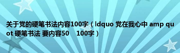 关于关于党的硬笔书法内容100字,ldquo 党在我心中 amp quot 硬笔书法 要内容50 100字这个很多人还不知道,今天菲菲来为大家解答以上的问题,现在让我们一起来看看吧!