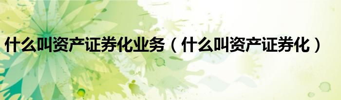 什么叫资产证券化业务(什么叫资产证券化)