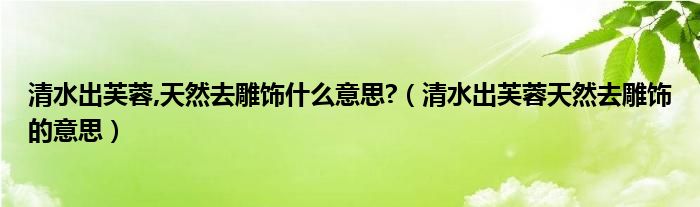 关于清水出芙蓉,天然去雕饰什么意思?,清水出芙蓉天然去雕饰的意思这个很多人还不知道,今天菲菲来为大家解答以上的问题,现在让我们一起来看看吧!