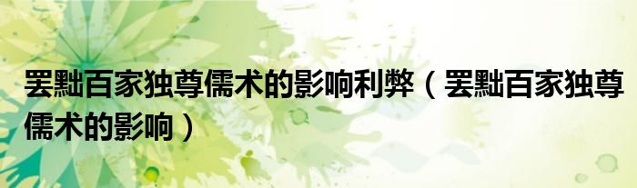 关于罢黜百家独尊儒术的影响利弊,罢黜百家独尊儒术的影响这个很多人还不知道,今天菲菲来为大家解答以上的问题,现在让我们一起来看看吧!