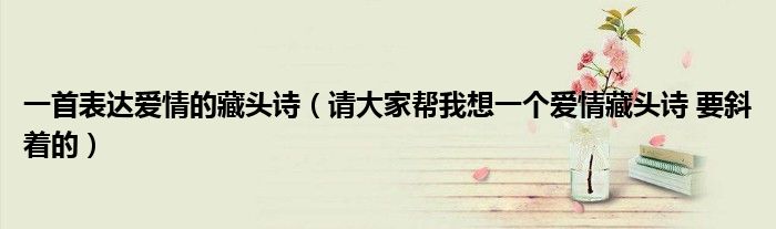关于一首表达爱情的藏头诗,请大家帮我想一个爱情藏头诗 要斜着的这个很多人还不知道,今天菲菲来为大家解答以上的问题,现在让我们一起来看看吧!