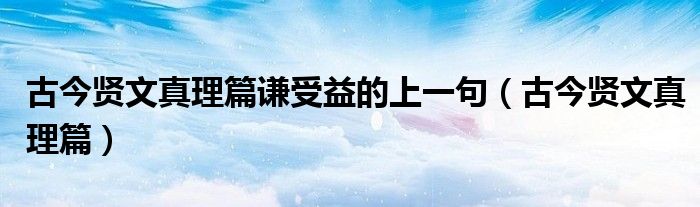 关于古今贤文真理篇谦受益的上一句,古今贤文真理篇这个很多人还不知道,今天菲菲来为大家解答以上的问题,现在让我们一起来看看吧!