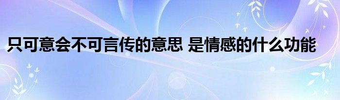 关于只可意会不可言传的意思 是情感的什么功能这个很多人还不知道,今天菲菲来为大家解答以上的问题,现在让我们一起来看看吧!