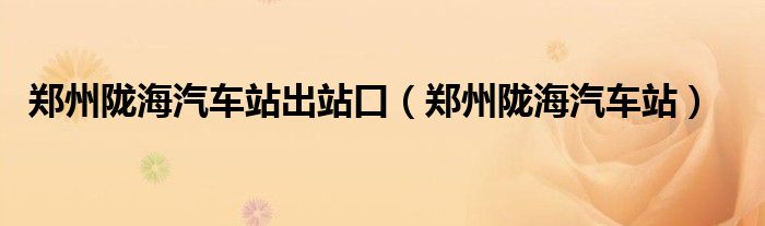 关于郑州陇海汽车站出站口,郑州陇海汽车站这个很多人还不知道,今天菲菲来为大家解答以上的问题,现在让我们一起来看看吧!