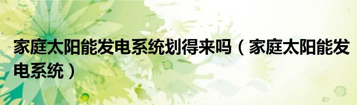 关于家庭太阳能发电系统划得来吗,家庭太阳能发电系统这个很多人还不知道,今天菲菲来为大家解答以上的问题,现在让我们一起来看看吧!