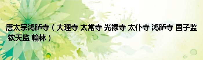 关于唐太宗鸿胪寺,大理寺 太常寺 光禄寺 太仆寺 鸿胪寺 国子监 钦天监 翰林这个很多人还不知道,今天菲菲来为大家解答以上的问题,现在让我们一起来看看吧!
