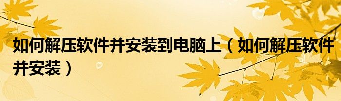 如何解压软件并安装到电脑上(如何解压软件并安装)
