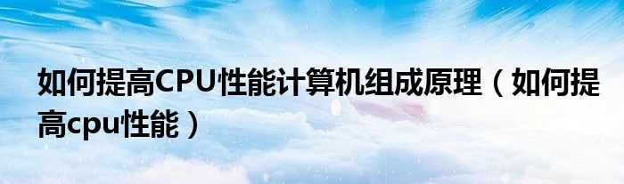 如何提高CPU性能计算机组成原理(如何提高cpu性能)