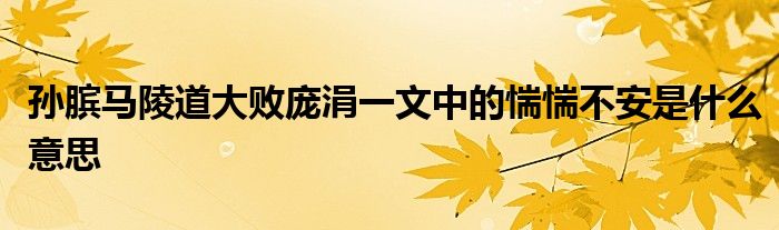 关于孙膑马陵道大败庞涓一文中的惴惴不安是什么意思这个很多人还不知道,今天菲菲来为大家解答以上的问题,现在让我们一起来看看吧!